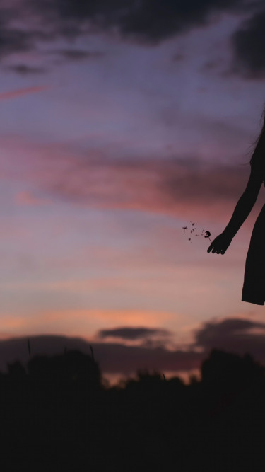 dandelion, silhouette, girl, twilight