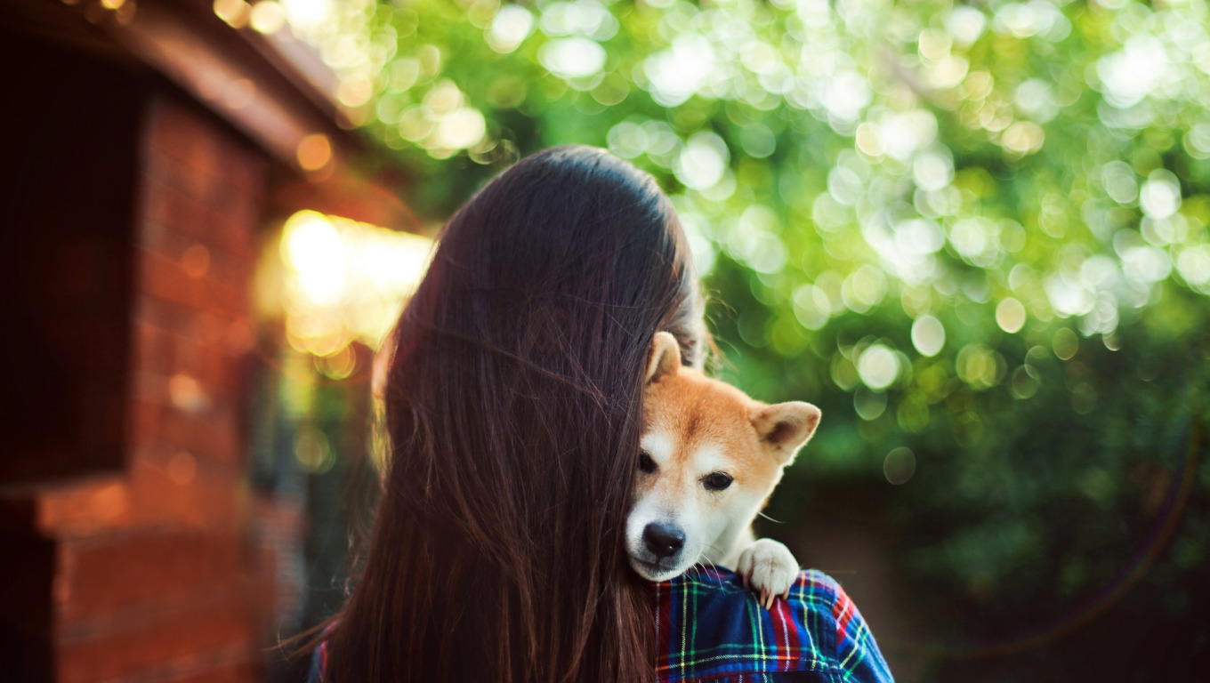 Back to Wallpaper girl, mood, dog, brunette, bokeh
