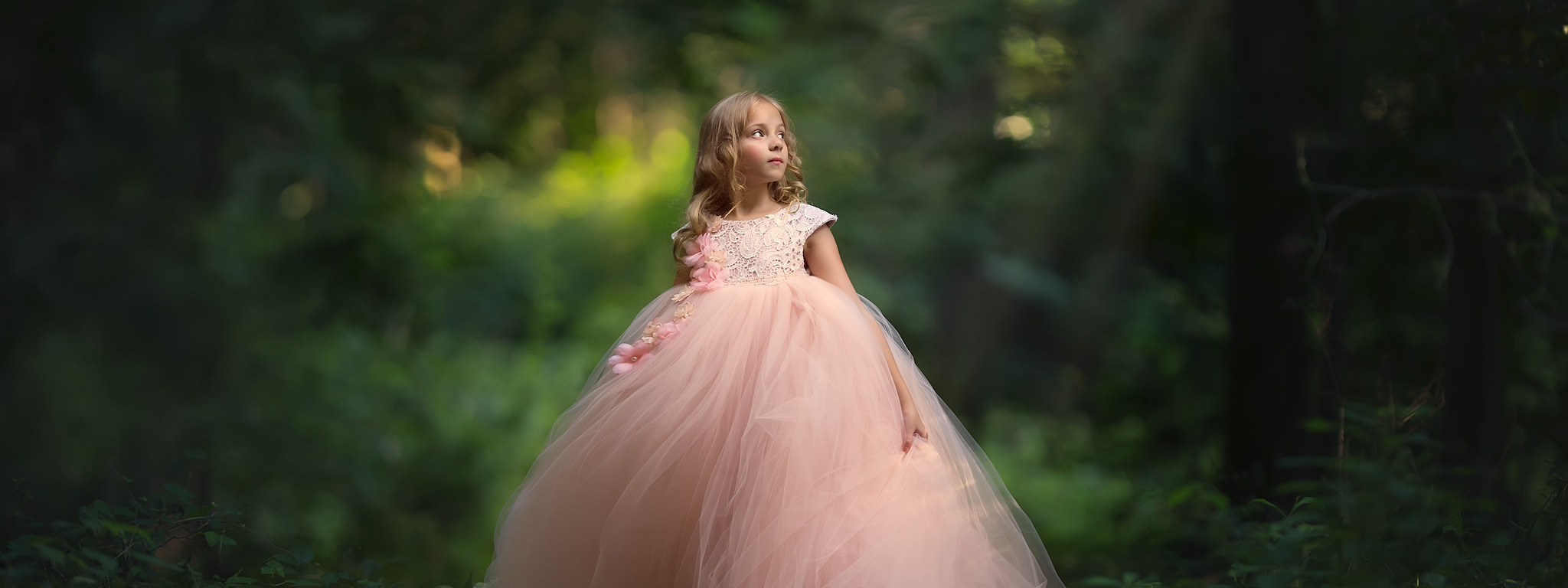 forest, dress, girl, bokeh