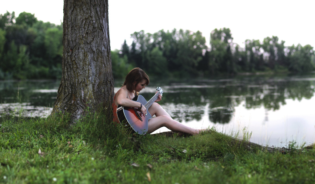 Back to Wallpaper girl, lake, guitar