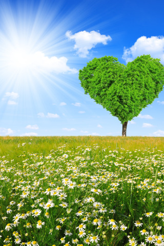 Back to Wallpaper field, trees, heart, chamomile, spring, meadow, love, sunshine