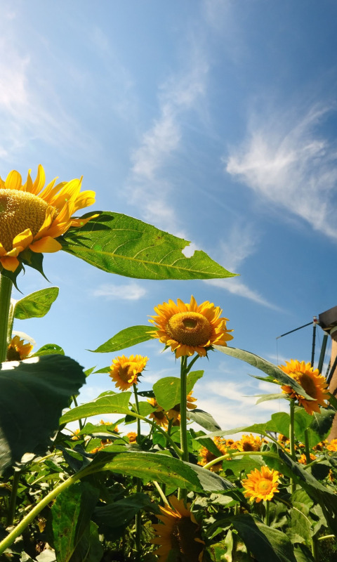 the sky, leaves, sunflowers, flowers, nature, background, widescreen, Wallpaper