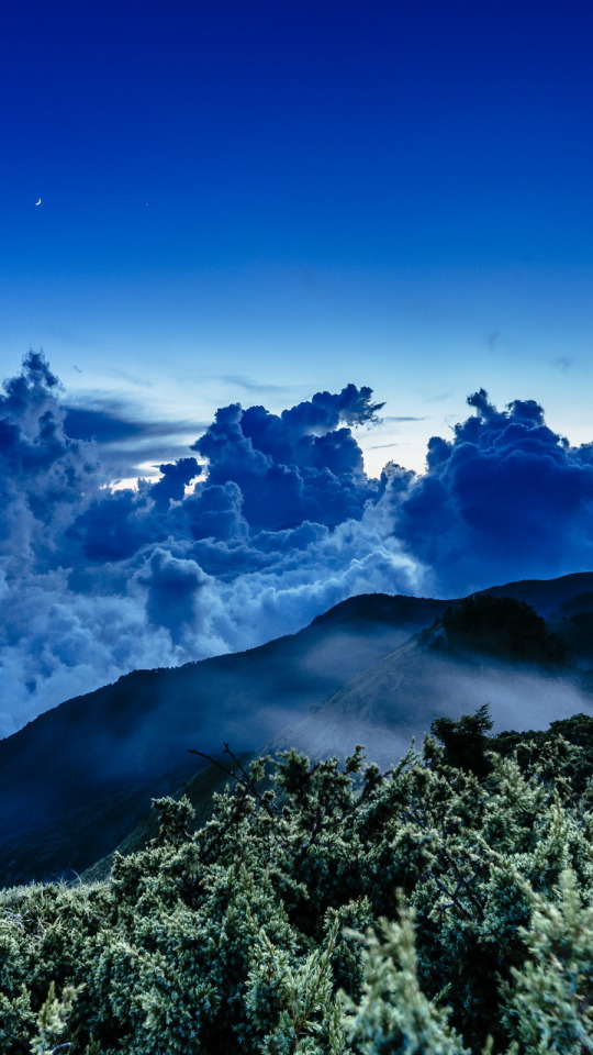 star, sea, sunset, night, cloud, mountain, wave, moonlight
