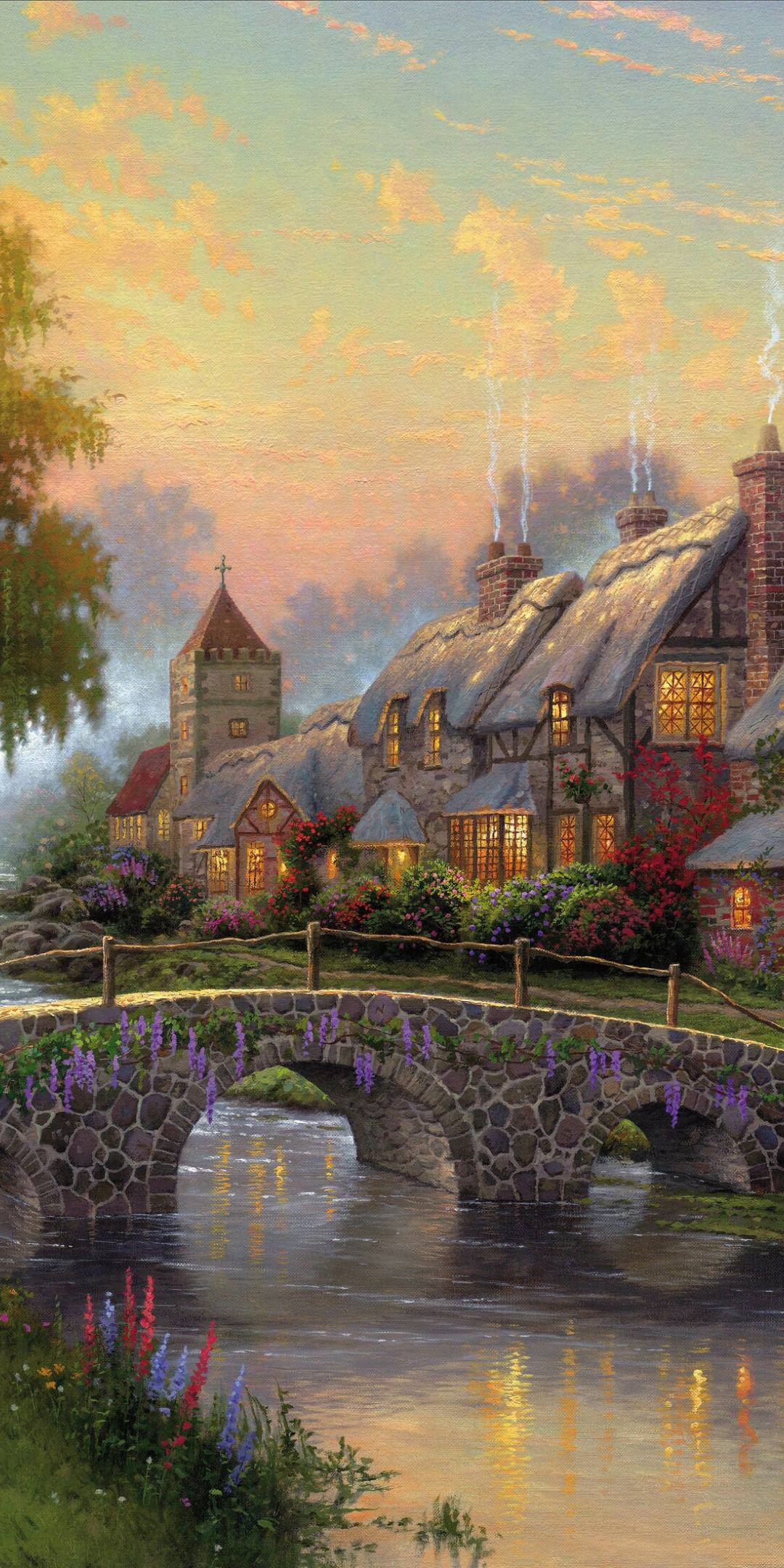 Back to Wallpaper summer, bridge, river, picture, summer, painting, cottage, bridge