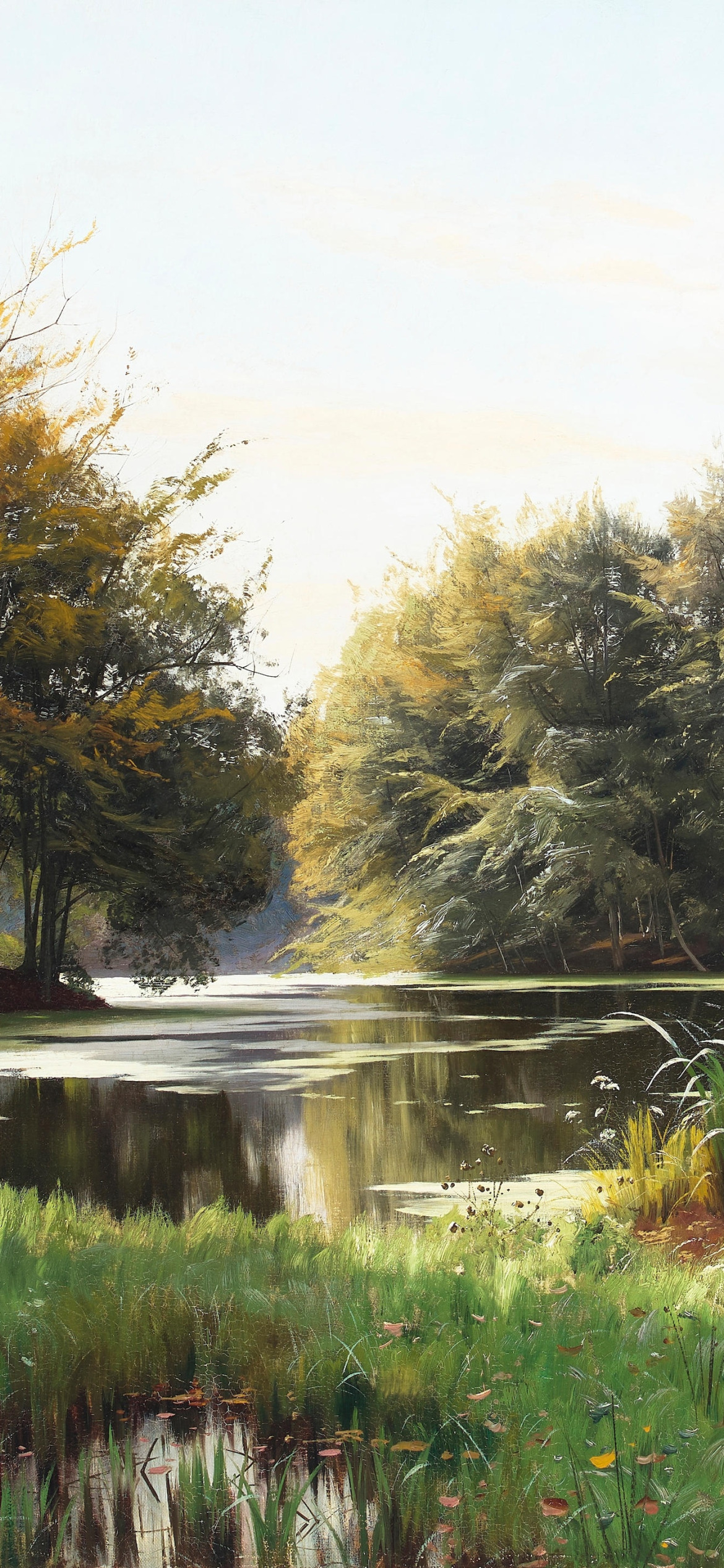 Back to Wallpaper grass, trees, picture, river, Peder Mork Monsted, Danish painter, Peter Merk Of Menstad, Peder Mørk Mønsted