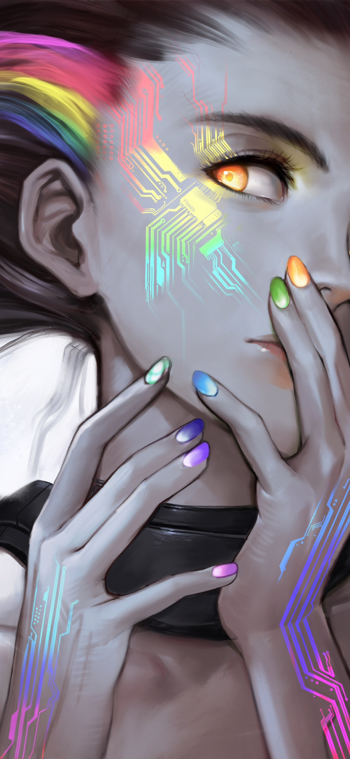 girl, hair, rainbow, scheme, art, Rainbow Circuit