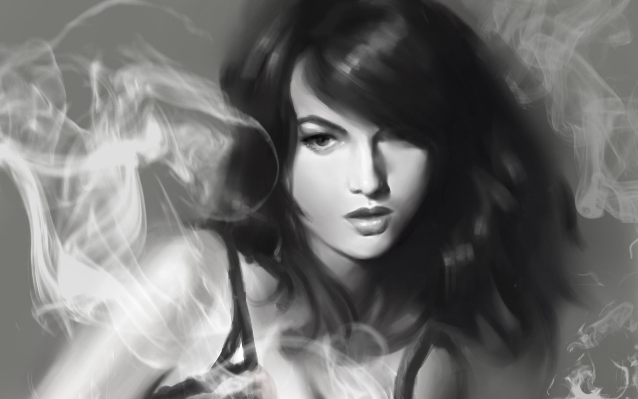 Back to Wallpaper girl, smoke, figure, art, black and white, monochrome