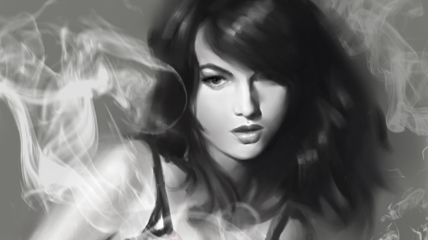 Back to Wallpaper girl, smoke, figure, art, black and white, monochrome