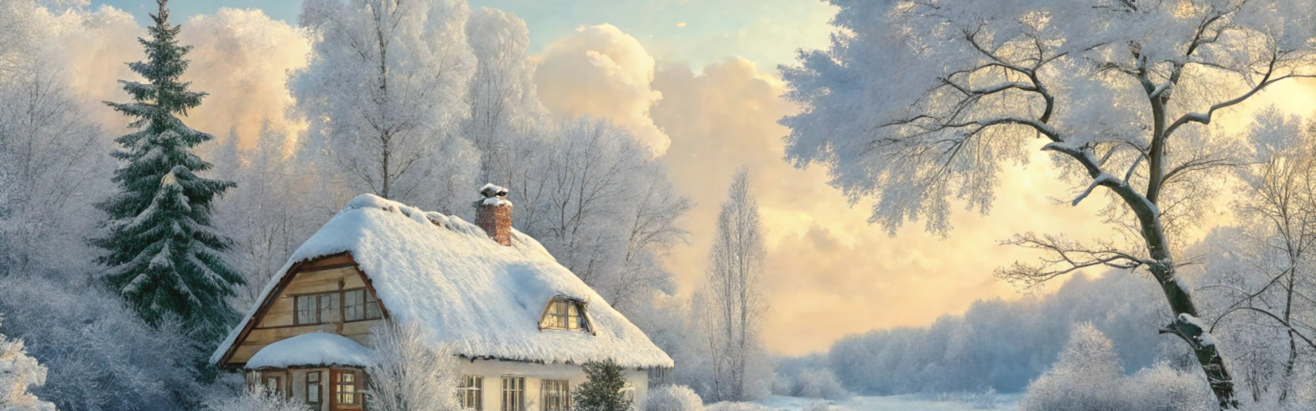 Back to Wallpaper winter, frost, snow, trees, river, house, AI art, neural network