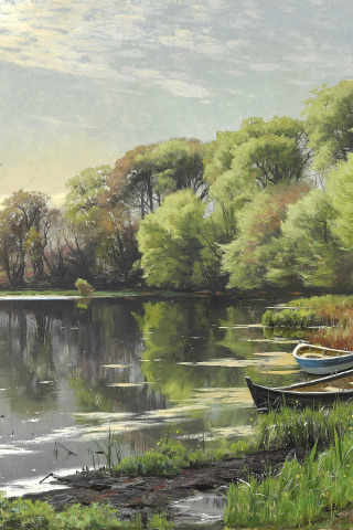 Back to Wallpaper Danish painter, Peter Merk Of Menstad, Peder Mørk Mønsted, 1894, Danish realist painter, oil on canvas, Spring day at the Millpond to Ørholm, Spring day at the mill pond in Arkholme