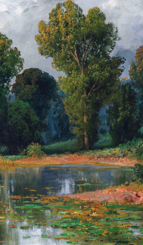 Back to Wallpaper autumn, trees, pond, picture, Alois Arnegger, Austrian painter, Alois Arnegger, Autumn landscape at the pond