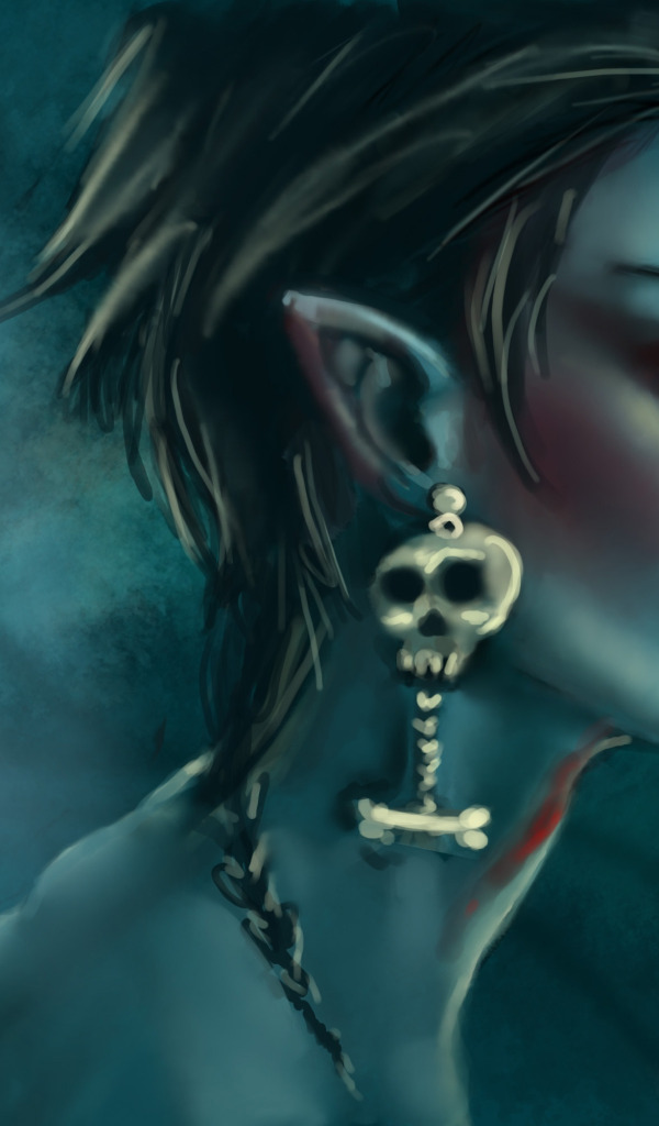 girl, blood, skull, monster, earrings, fantasy, art, bones