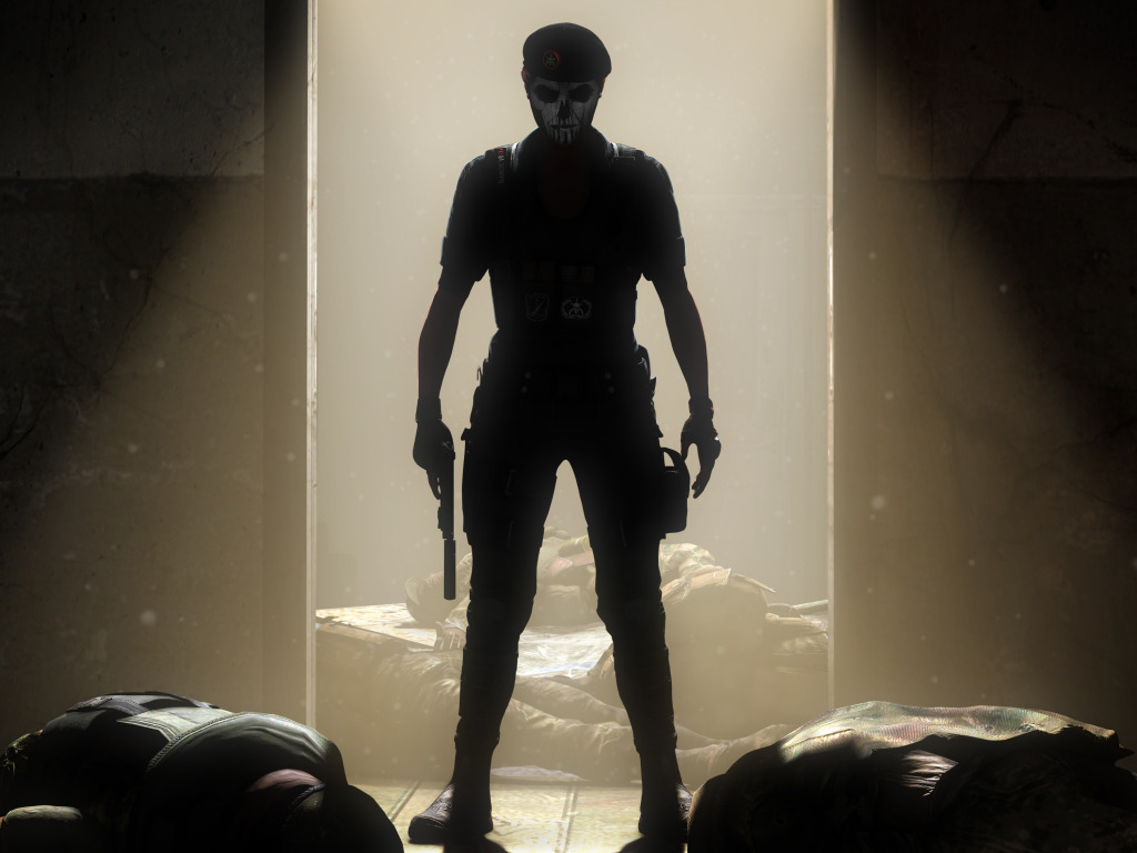 Back to Wallpaper girl, rendering, gun, skull, mask, Tom Clancy, corpses, Rainbow Six Siege