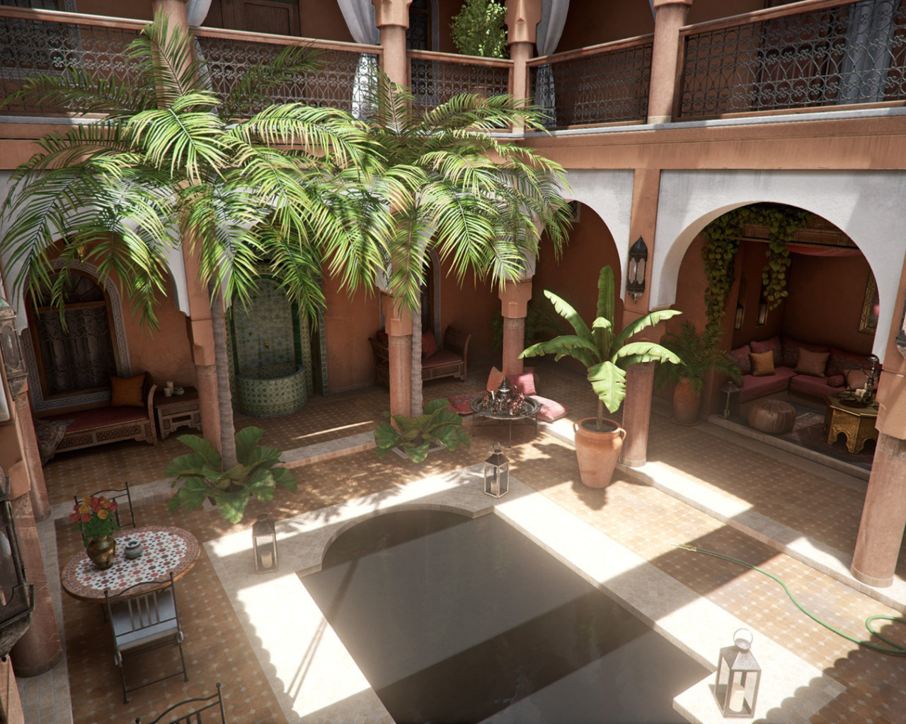 Back to Wallpaper comfort, palm trees, yard, decoration, Moroccan Courtyard