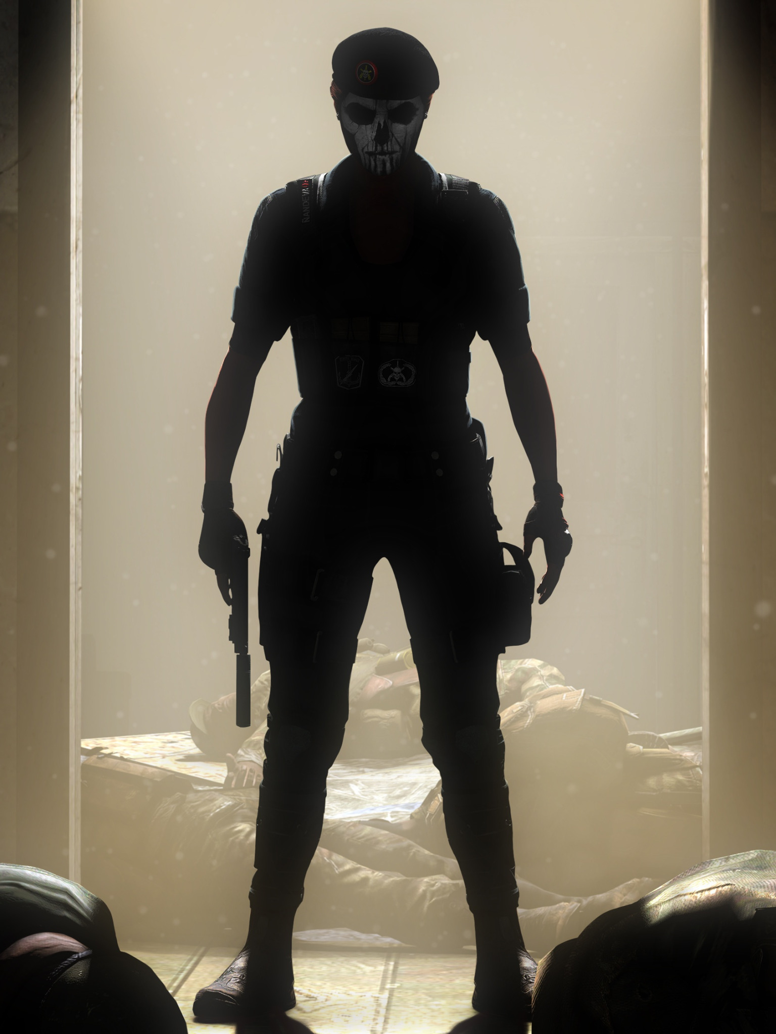 Back to Wallpaper girl, rendering, gun, skull, mask, Tom Clancy, corpses, Rainbow Six Siege