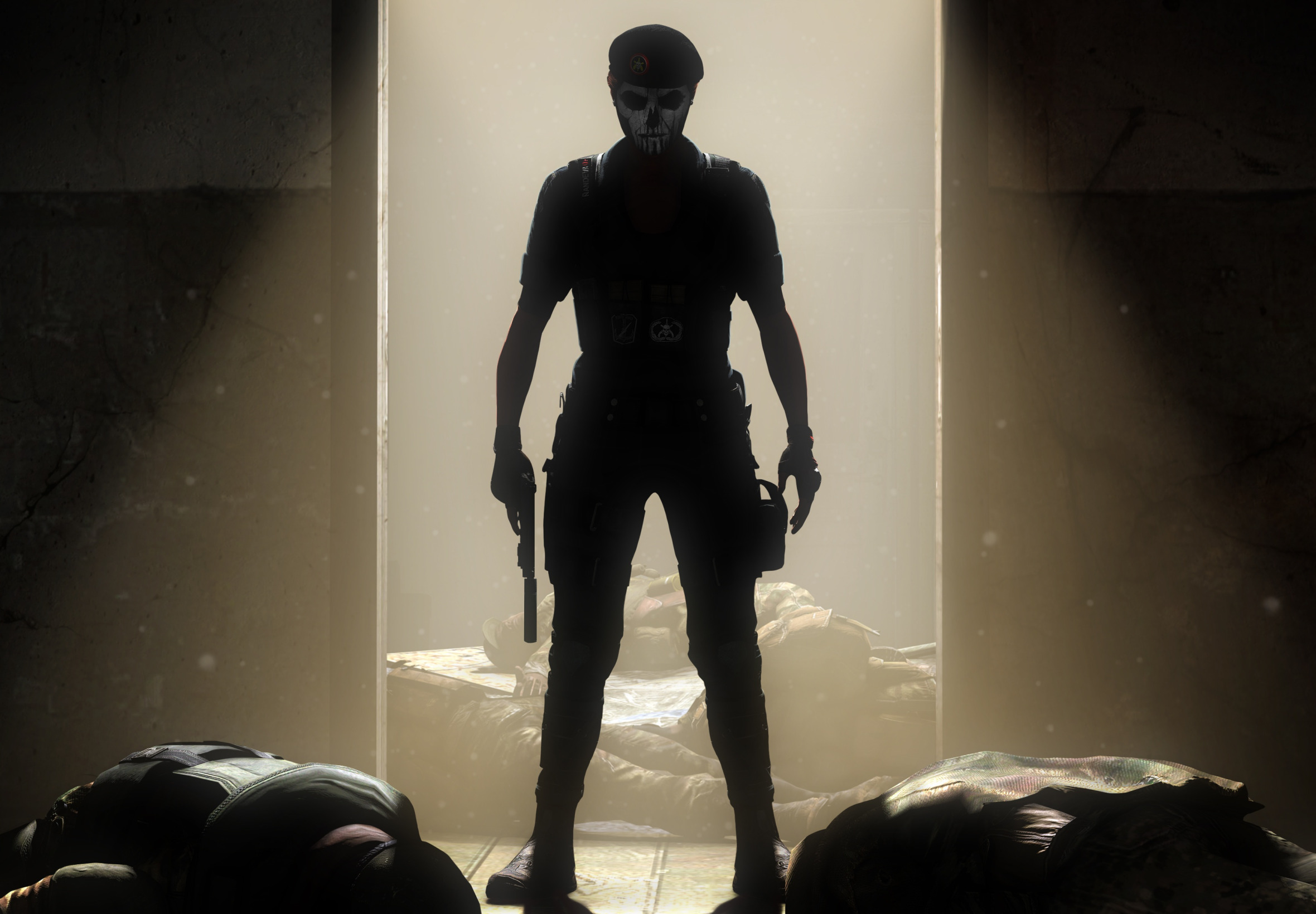 Back to Wallpaper girl, rendering, gun, skull, mask, Tom Clancy, corpses, Rainbow Six Siege