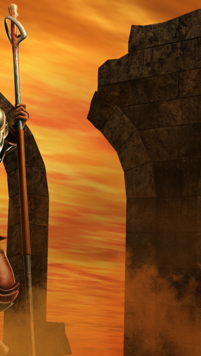 Back to Wallpaper the sky, girl, rendering, armor, warrior, chain, staff