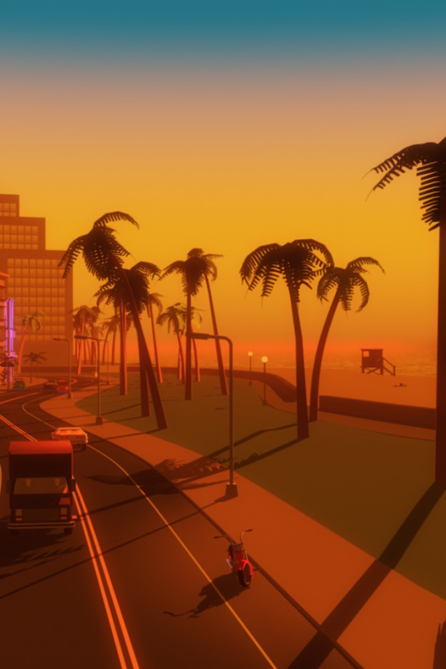 Back to Wallpaper sea, machine, beach, sunset, the city, street, graphics, Miami