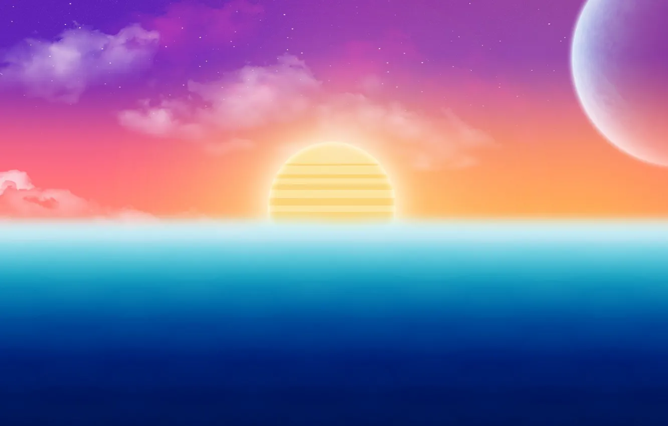 Phone wallpaper the sun, space, sunset, music, planet, synthpop, synth, retrowave (photo, picture)