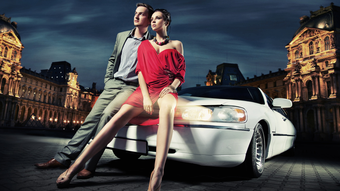 Back to Wallpaper machine, girl, the city, lights, building, the evening, guy, leggy