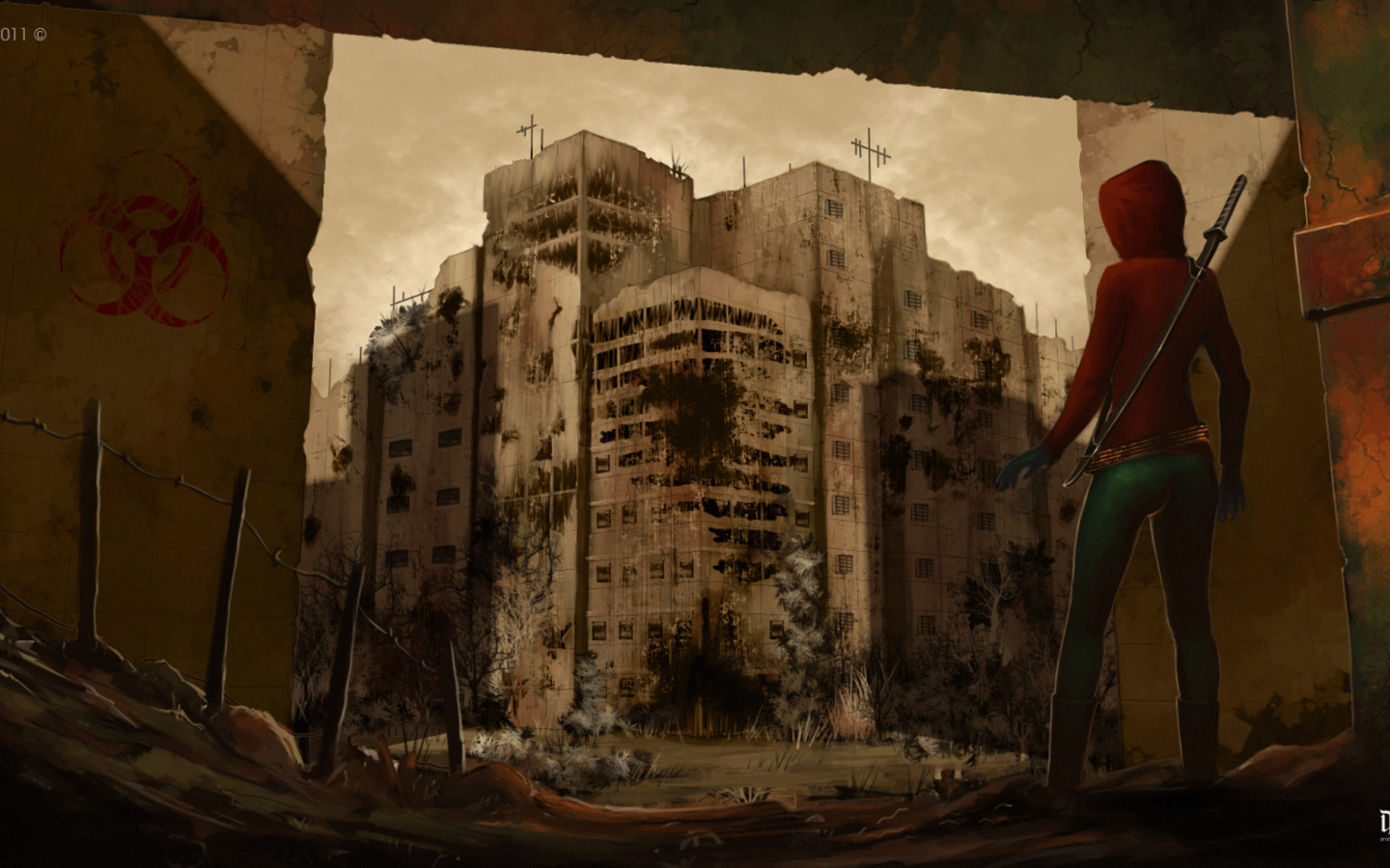 Back to Wallpaper girl, the city, sword, Japan, art, postapokalipsis, pustosh