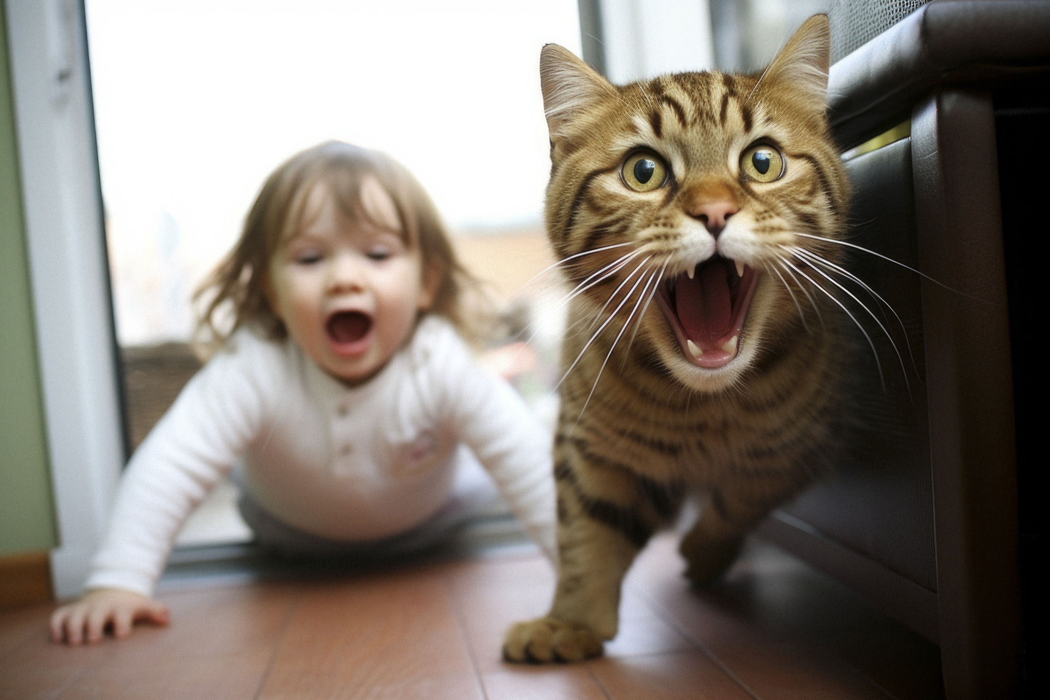 cat, cat, children, girl, two, digital art, AI art, The Art of Artificial Intelligence