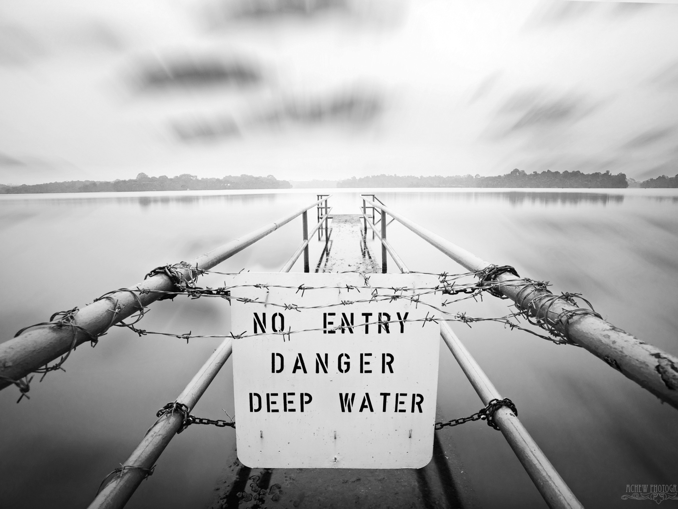 metal, lake, poster, spring, chains, white and black, barbed wire