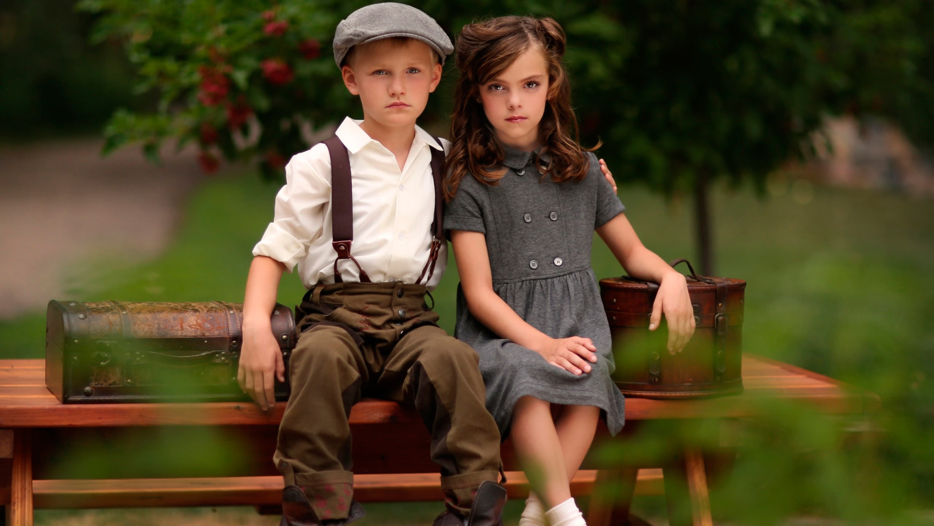 Back to Wallpaper retro, boy, girl, suitcase, bokeh, bag