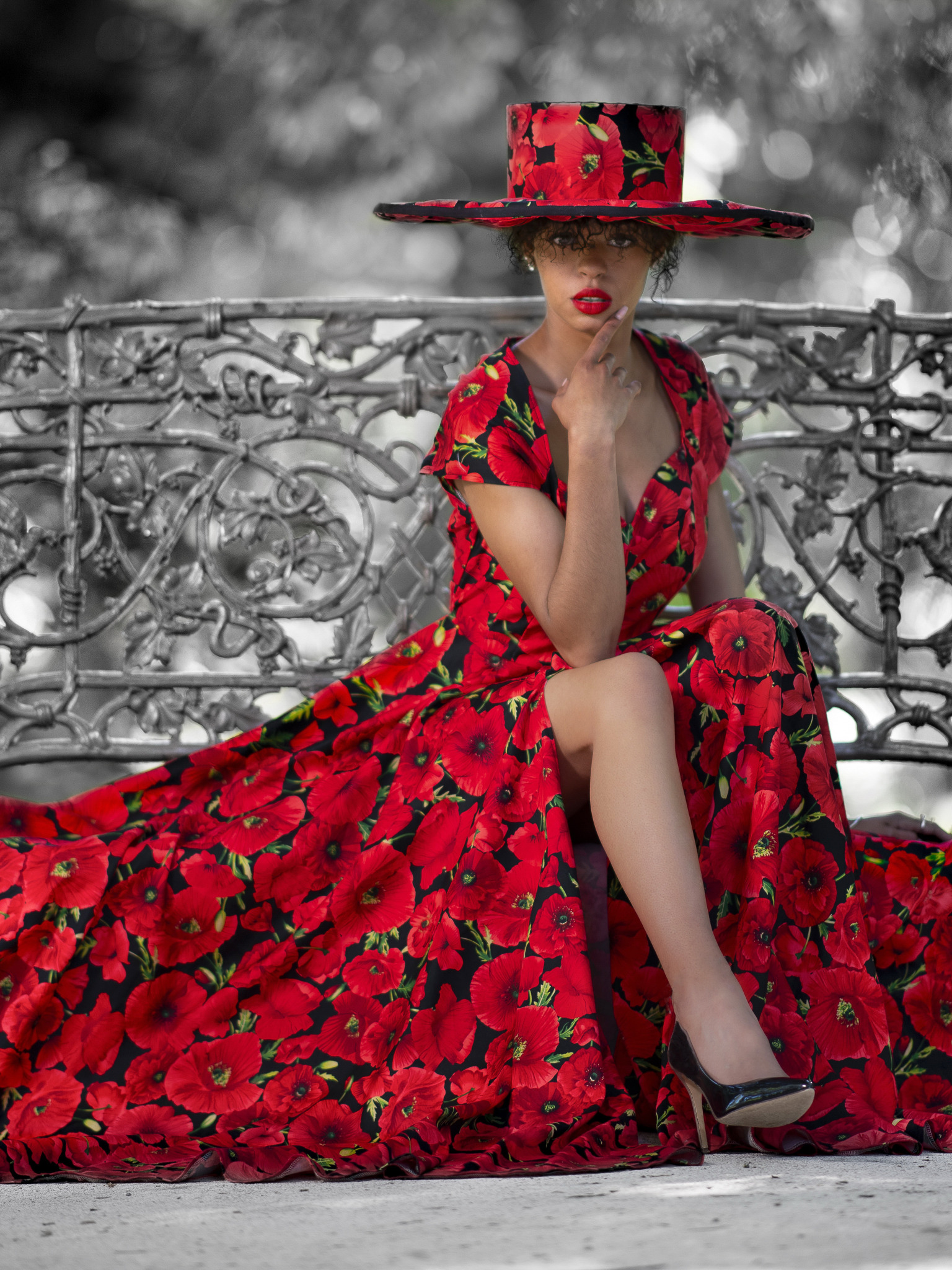 girl, style, bench