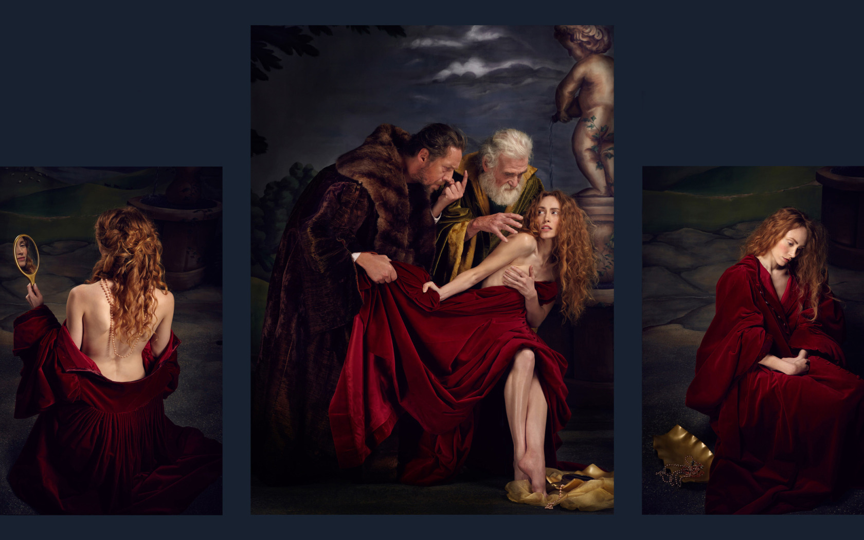 girl, dress, mirror, composition, triptych, Susannah