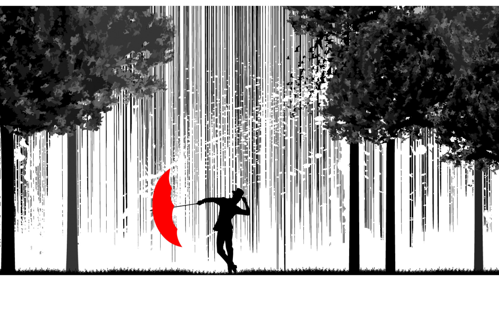 Back to Wallpaper trees, rain, umbrella, silhouette