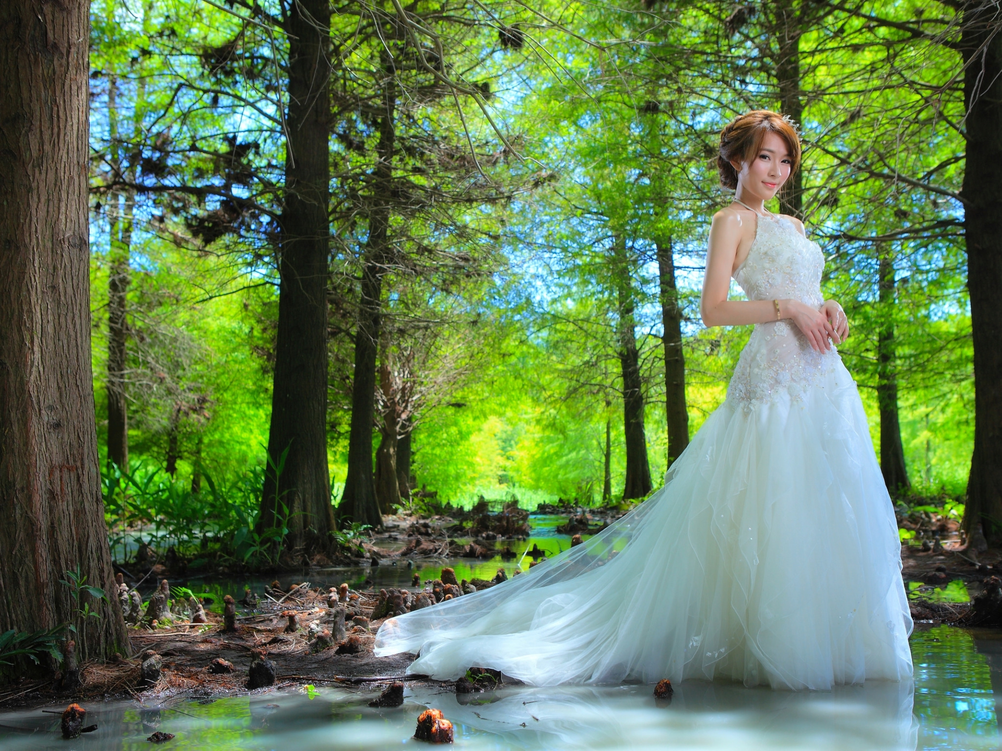 Back to Wallpaper forest, water, girl, trees, dress, Asian, the bride