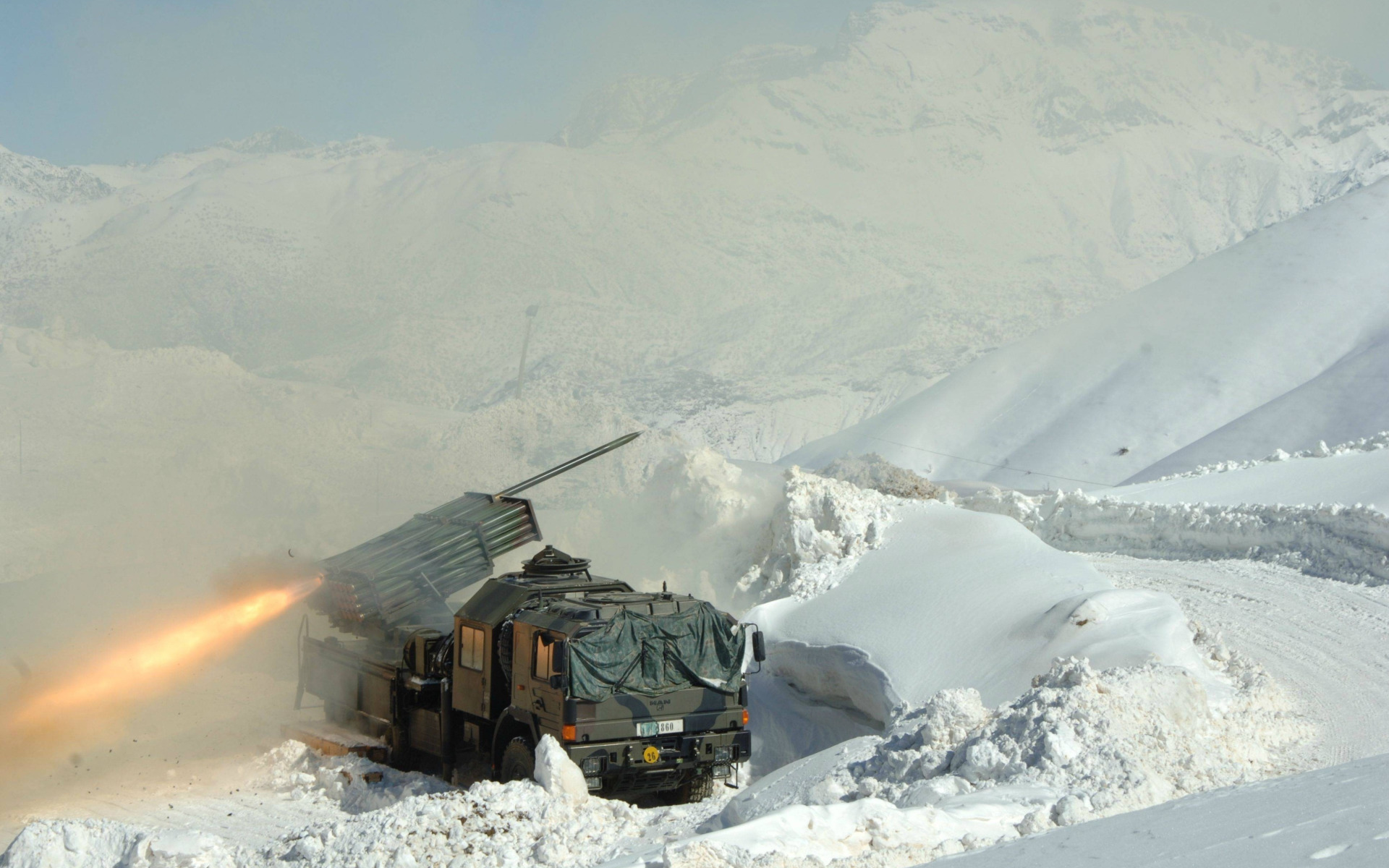 Back to Wallpaper fire, flame, mountains, snow, truck, M2 Browning, yuki, spark