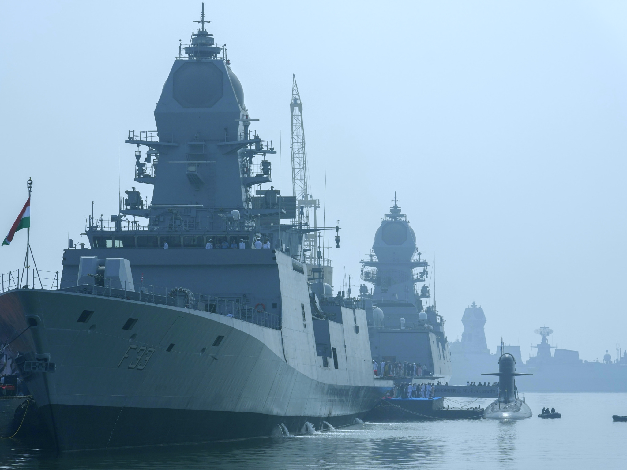 The Indian Navy, INS Vaghsheer submarine, the destroyer INS Nilgiri